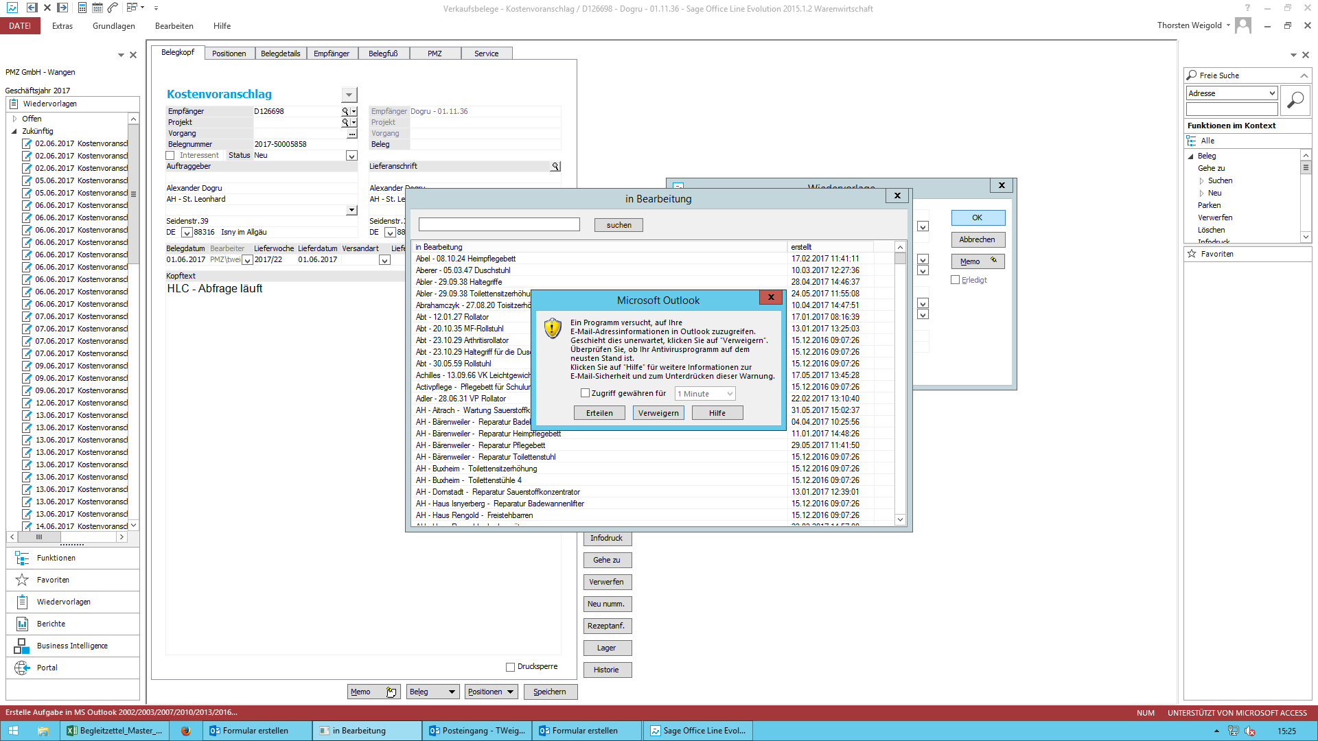 Beim Erstellen der Wiedervorlage "Kostenvoranschlag" kommt beim Speichern wieder diese Meldung . Wenn diese Meldung offen ist kann auch der Reiter auf dem Desktop für die Probleme und Vorschläge nicht geöffnet werden. Wohl eine kleine Nebenwirkung!