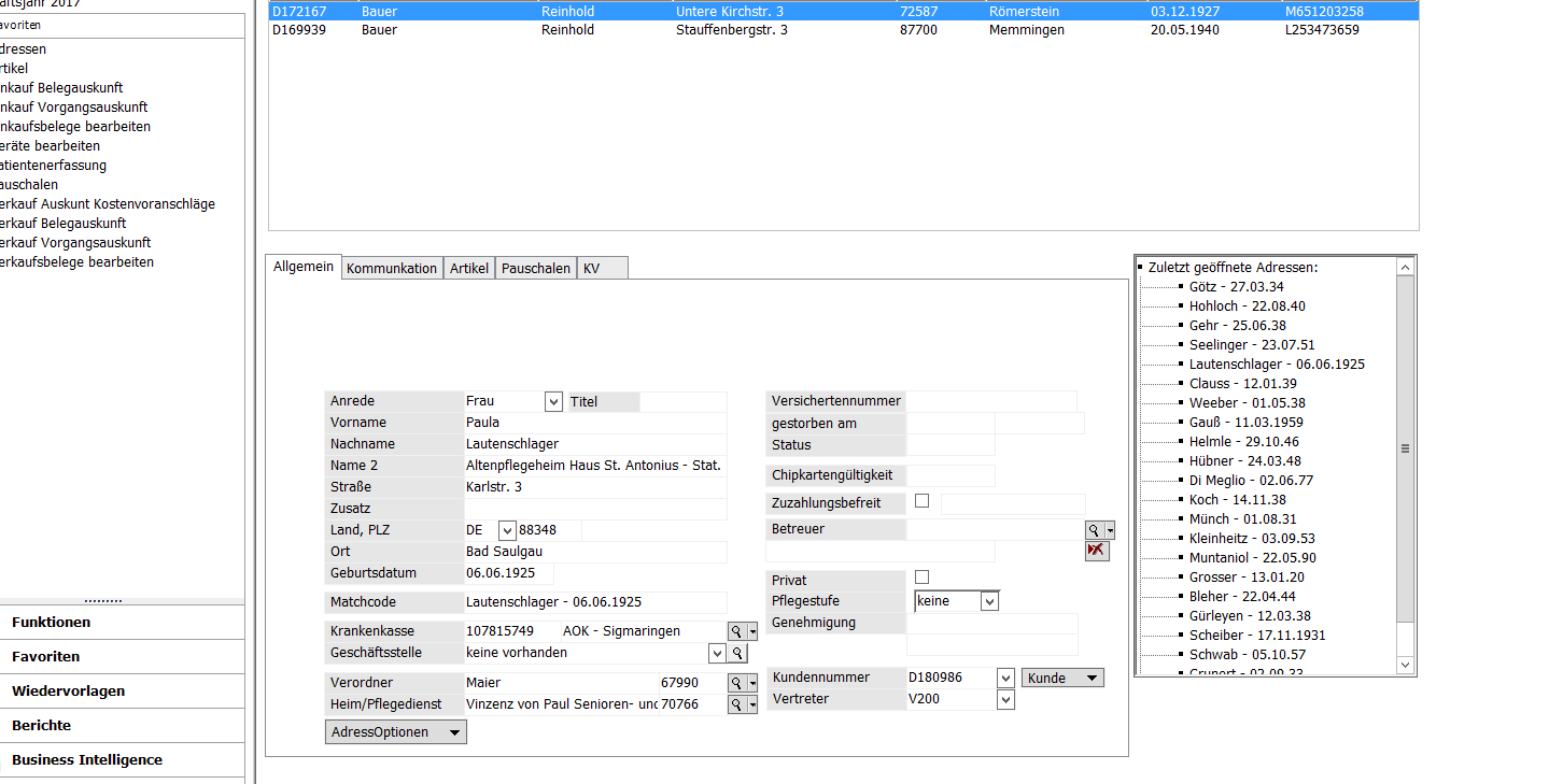 Bei Neuanlage von Kunden in Heimen, muss man immer, sofern kein Fax o.ä. vorliegt, immer über die Rubrik Adressen, die Heimadresse rausgesucht werden.